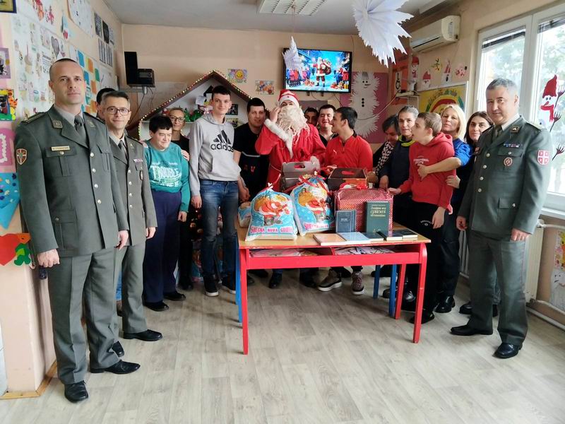 Припадници Војске Србије посетили су Дневни боравак „Маштоленд“ и том приликом обрадовали децу новогодишњим пакетићима. Посебну част пружили су овом догађају начелник Одељења за цивилно-војну сарадњу Генералштаба Војске Србије пуковник Бранко Поповић, потпуковник Дамир Халимовић из истог одељења, као и мајор Мирослав Стојановић, припадник Четврте бригаде копнене војске Србије. Деца су, између осталог, добила дидактички материјал и друге поклоне, док су књиге дониране као поклон за библиотеку Установе. Уз осмехе и весеље, малишани су уживали у пажњи и топлини које су им припадници Војске пружили. Атмосфера је била испуњена песмом, смехом и искреним тренуцима радости. Колектив Центра захваљује припадницима Војске Србије што су својим доласком и пажњом показали колико је важно бринути о најмлађима и допринети њиховој срећи. Ваша посета и гест пажње улепшали су дан не само деци већ и свим запосленима, подсећајући нас на праву вредност празничног духа – радост, љубав и дељење среће с другима.